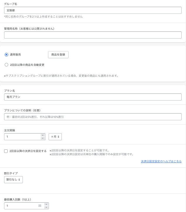 1.サブスクリプショングループを作成し、商品を紐付ける